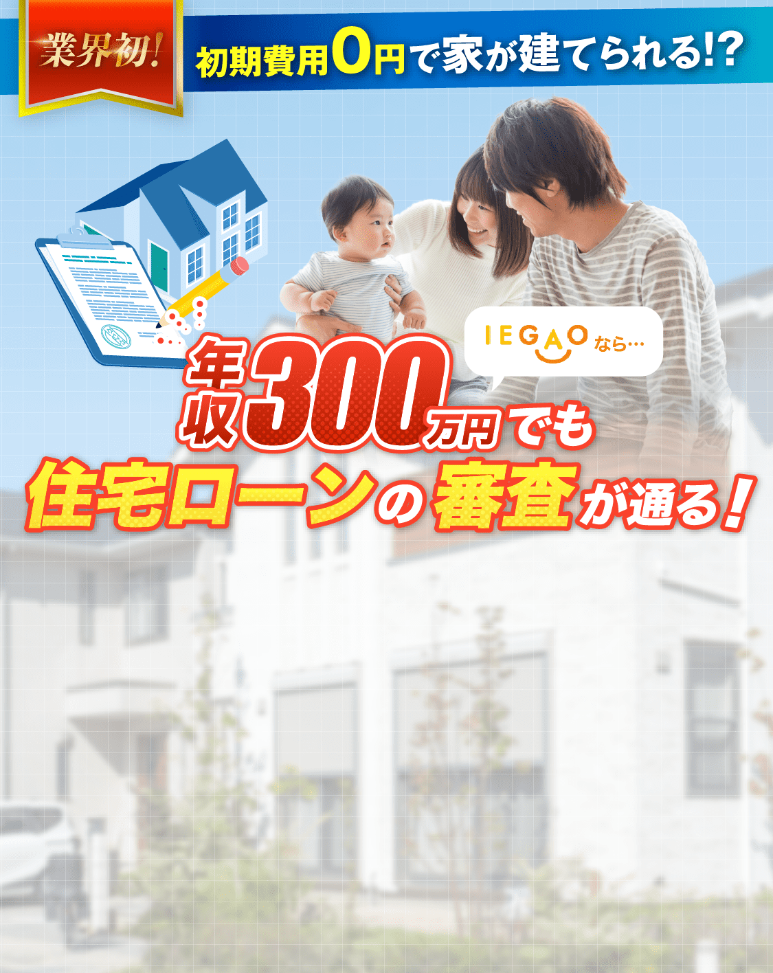 戸建を建てる際に必要になる頭金ですが、実は頭金以外にも初期費用(登記にかかるお金、火災保険にかかるお金等)が必要になります。IEGAO-イエガオでは、こちらの初期費用を全て負担します!